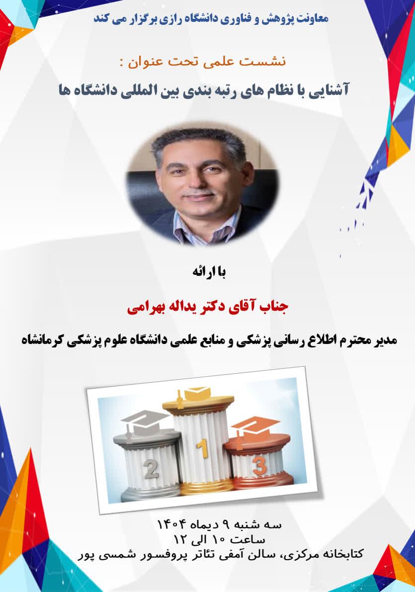 دانشگاه رازی با همکاری دانشگاه علوم پزشکی کرمانشاه کارگاه آشنایی با نظام های رتبه بندی را برگزار می نماید.